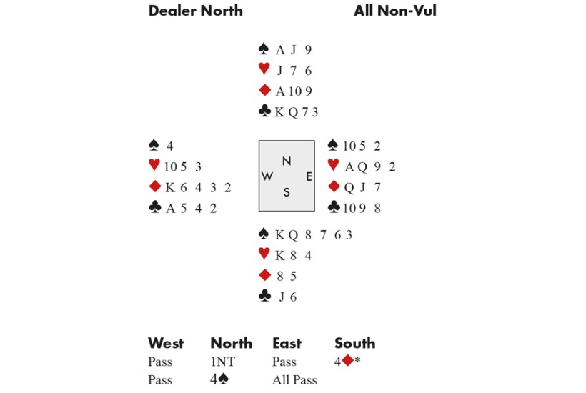 *relay to spades. Fiona (East) led the ♦️Q. Her partner, Helen Erichsen, encouraged with the ♦2 (reverse attitude), and the Norwegian declarer played low. Mistake. She should take the trick, knock out the ♣️A, ensuring a discard for one heart, and hope the ♥A is with East. But she held up – and was duly punished. Where some defenders might have woodenly continued diamonds, Fiona made a brilliant switch to the ♥Q! Declarer won with dummy’s ♥K, drew trumps, and played the ♣️J from dummy. Helen hopped up with the ♣️A and returned the ♥10. Declarer ducked, but it was no good: Helen had a third heart to play, and the contract went one down.