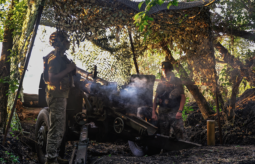 Soldiers of the 71st Jaeger Brigade’s artillery unit use an M101 howitzer they captured during the Kharkiv counter-offensive in 2022 (Photo: Svitlana Morenets)