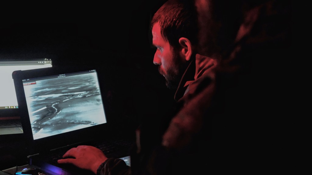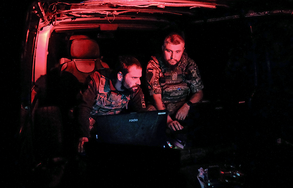 Soldiers of the 71st drone unit monitor the Leleka drone as it crosses the border into Russia (Photo: Svitlana Morenets)