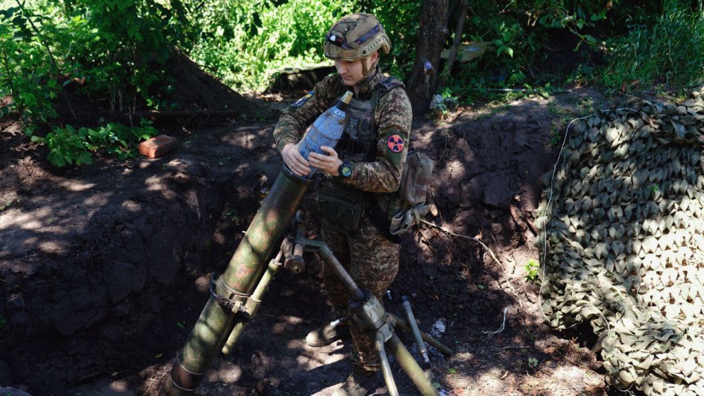 The mortar unit of the Spartan 3rd Operational Brigade prepares to strike Russian positions near Lyptsi, Kharkiv region. (Photo: Svitlana Morenets)