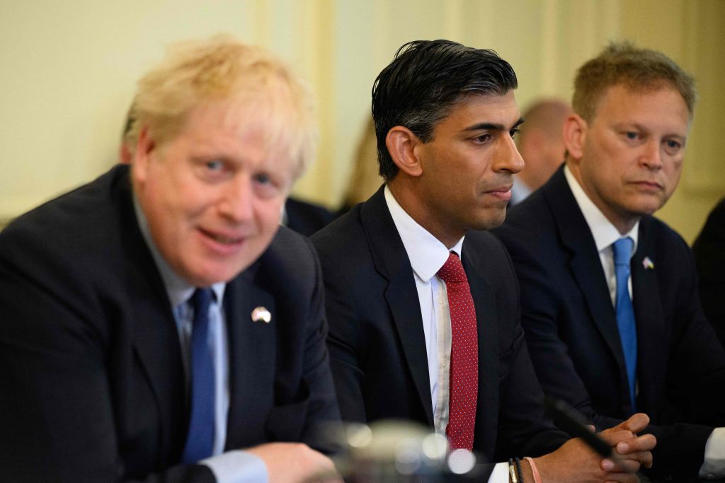 Boris Johnson, Rishi Sunak and Grant Shapps at 10 Downing Street, following Johnson’s survived vote of no confidence, 7 June 2022 (Getty Images)