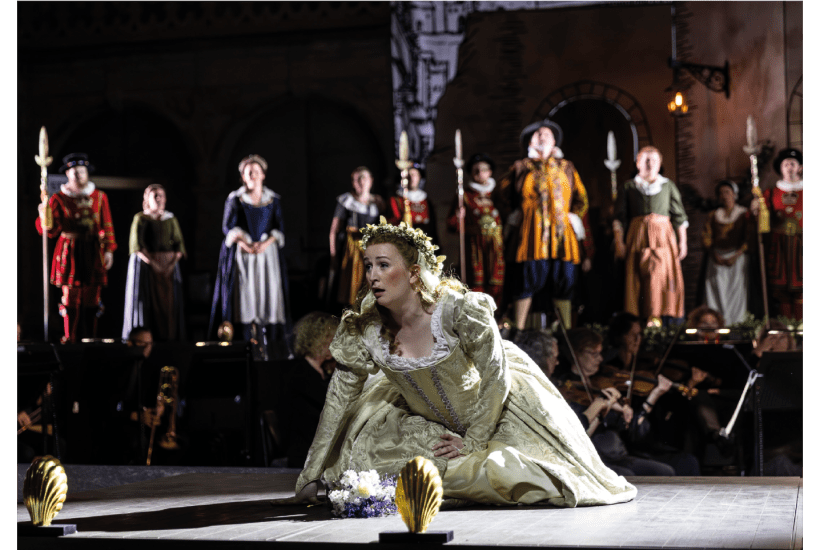 At Holland Park, Charles Court Opera gave us the best. John Savournin directed The Yeomen of the Guard, and he set it in the Tower of London in the 16th century. A bold move; it might even catch on. Savournin’s only major addition (apart from opening out some traditional cuts) was the appearance during the overture of W.S. Gilbert, complete with top hat and mutton-chop whiskers – conjuring his creations from the page and watching with satisfaction as they sprang to life. It was a touching, tactful homage – an early sign that (as in Buxton) everything we were about to see came from a place of genuine love.