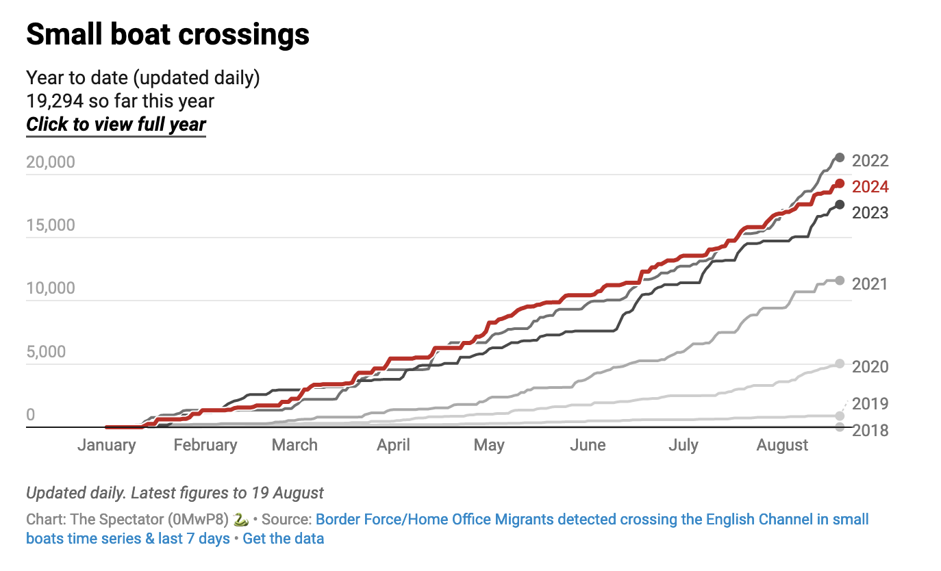 So much for Keir Starmer’s pre-election pledge to be tough on small boats and tough on the causes of small boats. Labour’s apparent indifference to mass uncontrolled immigration is no doubt a significant factor in the recent poll that revealed more than half of Britons believe the government ‘is heading in the wrong direction’.