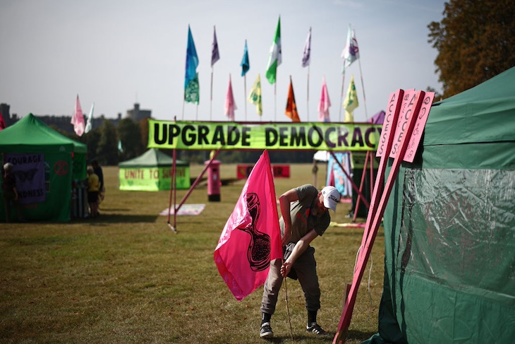 Pray for Windsor. From today, Extinction Rebellion is descending on Windsor Home Park for ‘three days of creative, peaceful action to propose democratic renewal’. It sounds like a mini festival – offering a mix of politics, camping and amateur dramatics. There will be a ‘Massembly’, in which the assembled extreme greens will discuss and vote on how to ‘upgrade democracy’, followed by a ‘performance-action’, which will ‘dramatise the death and revival of democracy through theatre, large-scale puppetry and communal song’. Say what you will about XR, it knows its target audience.