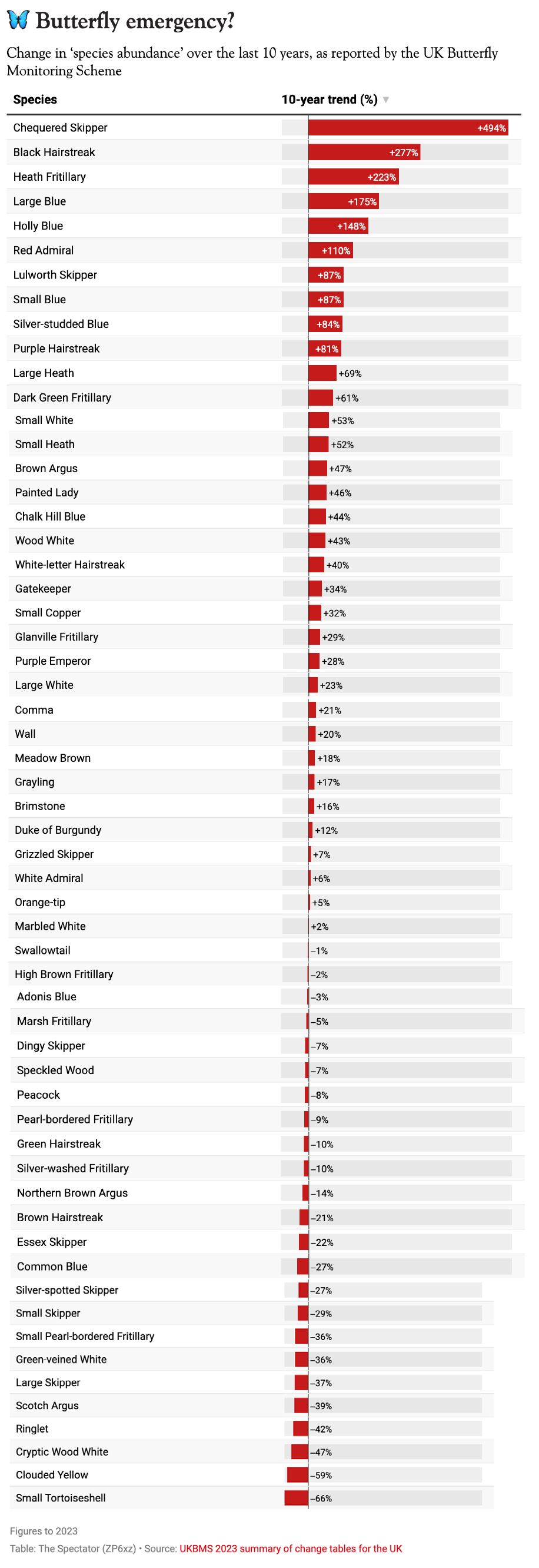 There have been some collapses, such as the Heath Fritillary, down 88 per cent over the past 42 years. But overall, the numbers are hardly indicative of a ‘butterfly emergency’, still less a collapse on human food supplies. It is yet one more case of climate campaigners preferring anecdote and dodgy-looking data over proper data when it suits them.
