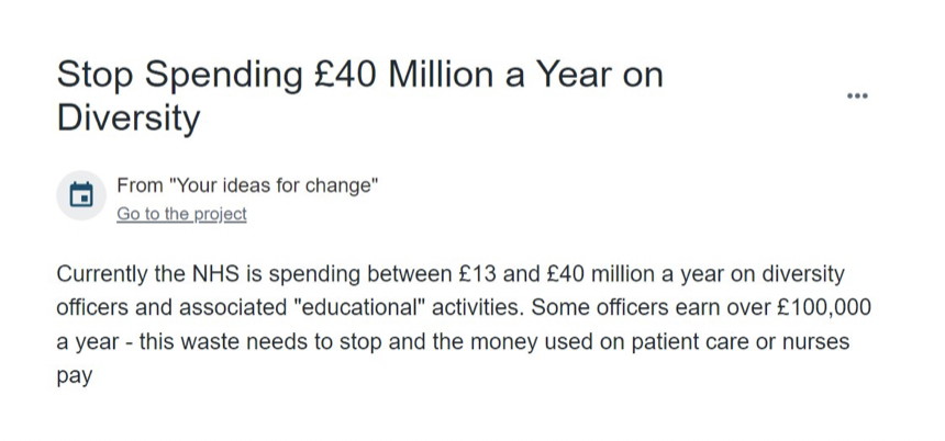 From ‘diversity’ spending to concerns about immigration, the responses are rather damning. One participant blasted the health service for spending ‘between £13 and £40 million a year on diversity officers’, fuming that: ‘This waste needs to stop and the money used on patient care or nurses pay.’ Oo er. Another titled their complaint starkly: ‘NHS not IHS’ – writing that: ‘We seem to be paying for an International Health Service where foreign nationals can fly into the UK to use NHS services free of charge.’