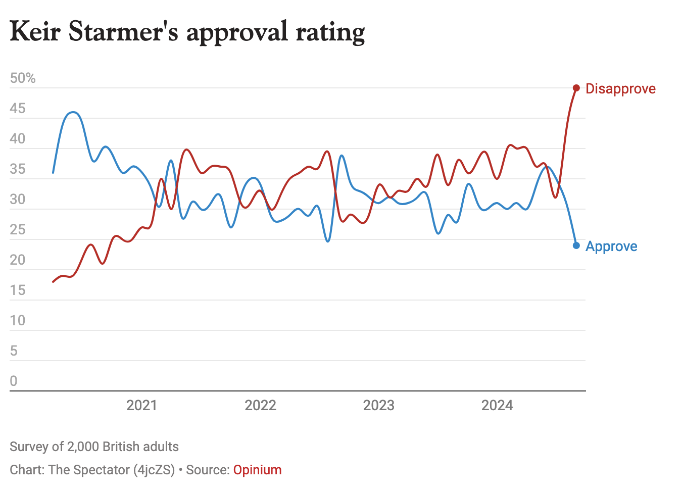 Just weeks ago, polling by Opinium revealed that the Prime Minister’s approval rating dropped down to -26 since Sir Keir became the country’s leader. It made him – by a point – less popular than former PM Rishi Sunak which, er, after his party’s electoral defeat just three months ago says quite something.