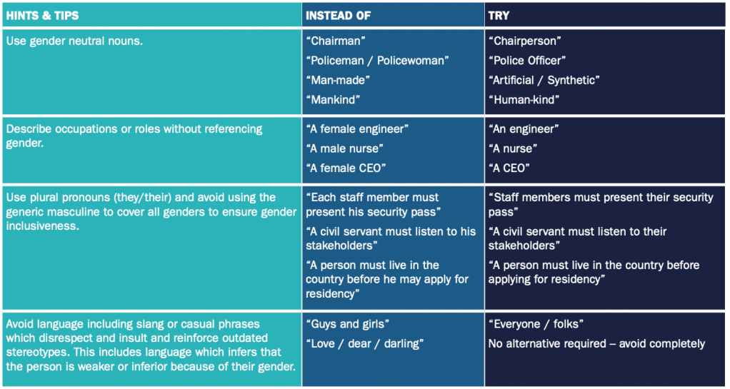 Perhaps it’s a good thing the Northern Irish civil service has put together this handy guide – as Mr S would bet almost no one else would have picked up on the, er, offensiveness of these non-inclusive terms. The handbook is first sceptical of ‘gendered’ phrases like ‘chairman’, ‘a female CEO’ and even the all-encompassing ‘guys and girls’ greeting. Instead, civil servants should swap these out for ‘chairperson’, ‘a CEO’ and, um, ‘folks’.