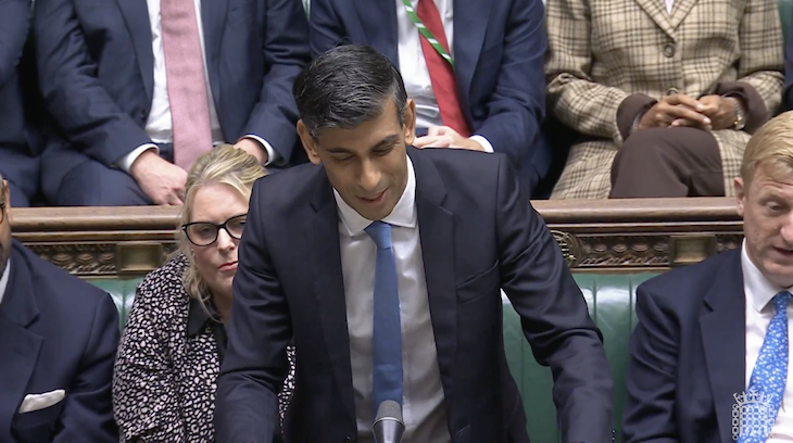 Sunak opened with a joke about Sue Gray in relation to Labour’s new deal for workers. When, he asked, did Sir Keir become a fan of fire-and-rehire? The PM huffed that his industrial policy would ‘restore dignity’ to employees after the Tories had ‘failed for 14 long years.’