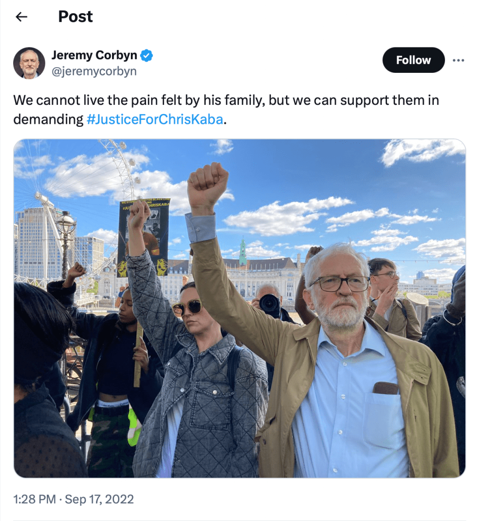 The former Labour leader was characteristically quick to take to social media at the time of the police incident. Opting to post a picture of himself on a march for Kaba, Corbyn added the caption: ‘We cannot live the pain felt by his family, but we can support them in demanding #JusticeForChrisKaba.’ Crikey. The now-independent MP has been curiously quiet on the matter since more recent details about Kaba have come to light. Will Corbyn now admit he was overhasty on this one? Don’t hold your breath…