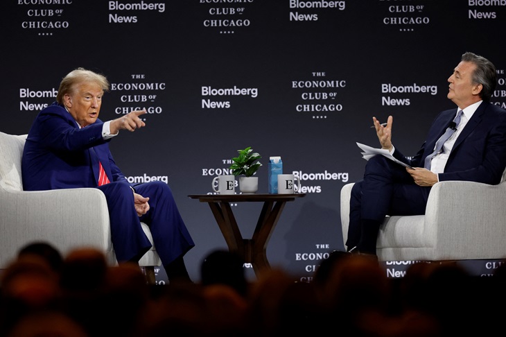 This is legendary. Trump calls the Bloomberg News Editor-in-Chief John Micklethwait fake news right to his face at the Economic Club of Chicago event. pic.twitter.com/R93KBNoF6c