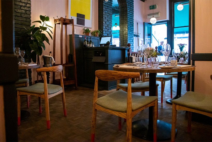 Home Kitchen is not for profit, an oddity for Primrose Hill. It calls itself ‘the world’s first fine dining restaurant staffed entirely by homeless people’, existing to ‘help socially vulnerable people get out of poverty and into work’. Staff are full-time, adequately paid, and take professional qualifications at the restaurant’s expense. If it sounds like the kitchen at Occupy, St Paul’s Cathedral in 2011 – political movements need cuisine as much as anyone, perhaps more – it is nothing like it. That was a tent, and it did not plead. This is a townhouse, and it does, but the world is crueller now.