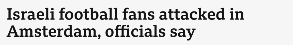 Football fans are known to get a little rowdy after a game, but the horror that broke out after the Maccabi Tel Aviv and Ajax game on Thursday night was an entirely different matter. As Jonathan Sacerdoti wrote for the Spectator today, hundreds of Jews were hunted and beaten by mobs after the game while videos of the violence quickly spread across social media, leaving users horrified at the Amsterdam attacks. Yet for some rather peculiar reason, mainstream broadcasters were not quite as fast to report on the matter as one might have expected – with the Beeb in particular notably slow to the news, with readers taking to Twitter to blast both the delay to the public service broadcaster’s reporting and the language used to describe the attacks. Good heavens…