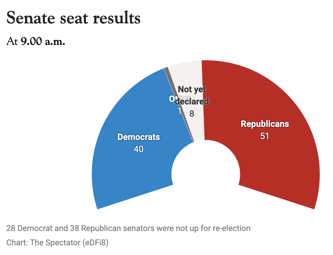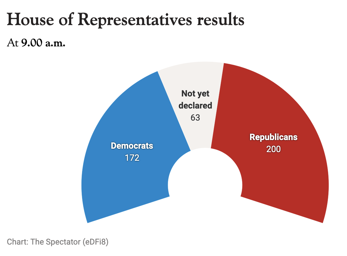 Results in the House of Representatives also look to be going the Republicans’ way. The party is so far up by one seat: