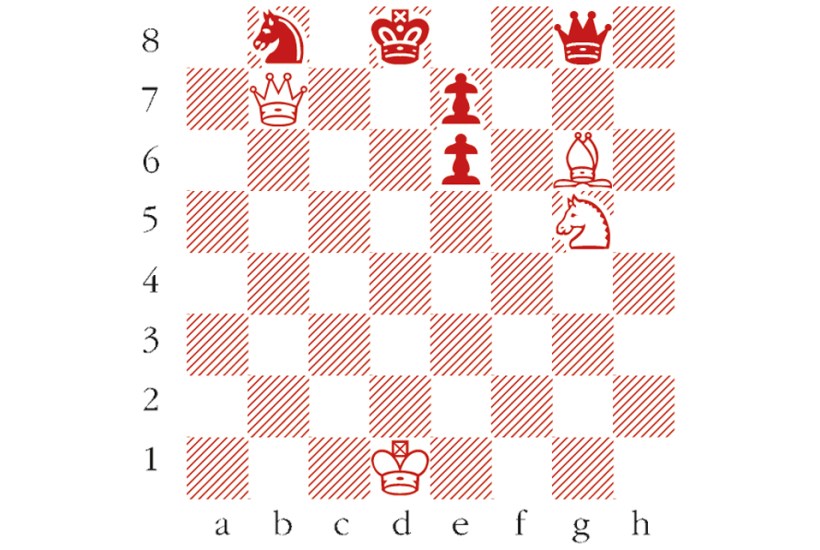 White to play and mate in 2. Composed by Sam Loyd, La Stratégie, 1867. Email answers to chess@spectator.co.uk by Monday 18 November. There is a prize of £20 for the first correct answer out of a hat. Please include a postal address and allow six weeks for prize delivery.