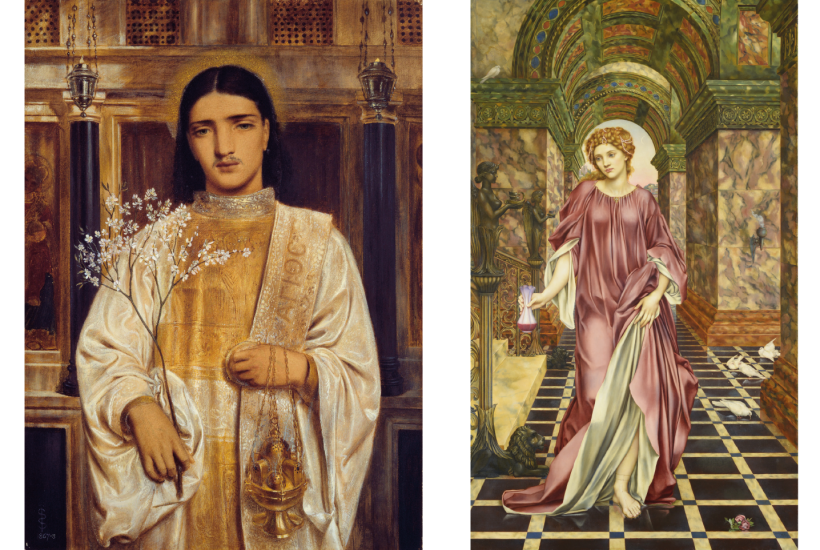 There are other bells and smells here. ‘A Saint of the Eastern Church’ (1868) by Simeon Solomon shows a young, barely moustachioed Greek priest holding a branch of myrtle in one hand and a censer in the other. Solomon, brought up an orthodox Jew, was homosexual and this effeminate figure would have enraged low church Victorians – not just for the cleric’s effeminacy but also his rituals.