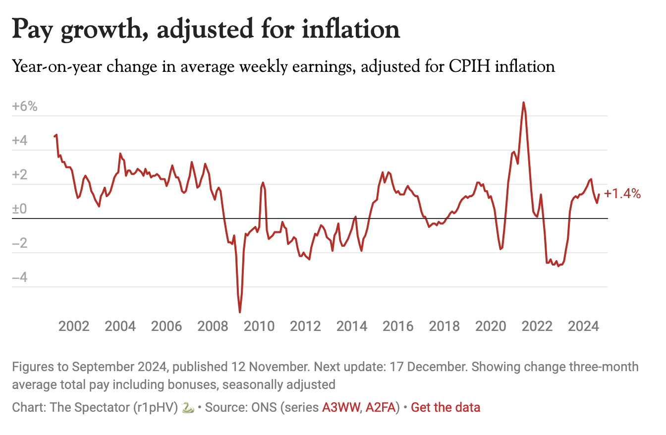In more bad news, those out of work due to long-term sickness remains at a near record high of 2.8 million people. That figure even seems to be going up again after falling slightly over the last few months. In turn, the ‘claimant’ unemployment count went up too, highlighting the need for the government to tackle the issue of long-term joblessness if it does not want to continue to rely on record high immigration.