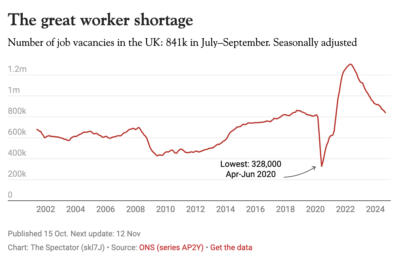 Perhaps concerningly, the slowdown in the jobs market comes before Rachel Reeve’s business tax rises come into effect. Employers are braced for rises in National Insurance contributions which the Office for Budget Responsibility says will reduce employment and economic activity. If employers’ worst fears are realised it’s easy to see what happens next.