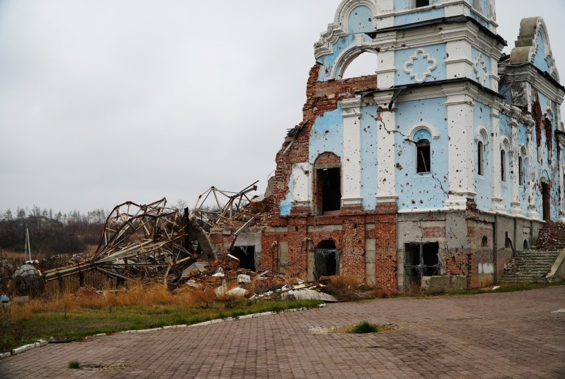 Not a single home remains intact in the village of Bohorodychne in Donbas, since it was torn apart by artillery back in 2022. There are signs warning about mines everywhere. The local school is ripped apart and burned-out. Military vehicles are camped in the village and in the fields. No shops are open. Even the local Russian Orthodox church has been destroyed in the fighting.