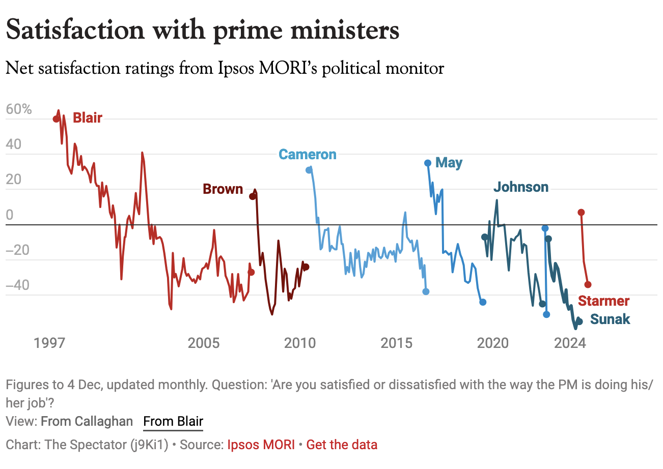 Another day, another bit of bad news for Sir Keir Starmer. A new Ipsos poll carried out between 27 November and 4 December has revealed that dissatisfaction with the Labour leader has reached a staggering 61 per cent – his worst rating as leader of the lefty lot. Good heavens…