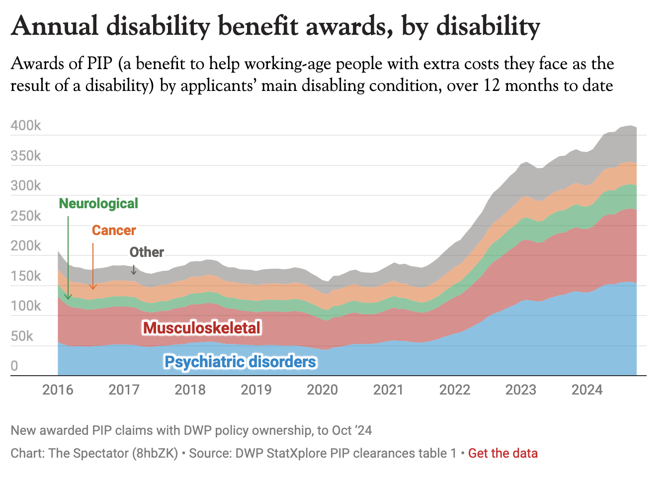 Ballooning welfare costs are in large part driven by sickness benefits. Earlier this week, it was revealed that disability benefit claims remain at an all-time high, with the majority of claims being brought about by ‘psychiatric disorders’ and ‘musculoskeletal’ conditions.