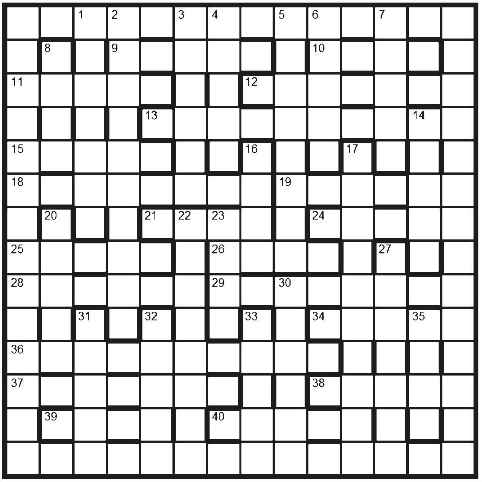 Clockwise round the grid from 1 run the final words (3,6,4,3,6,3,8,4,3,4,2,6) of a poem. Two unclued lights (one of two words) are also taken from the poem, whose author’s surname appears as a clued light which must be shaded.