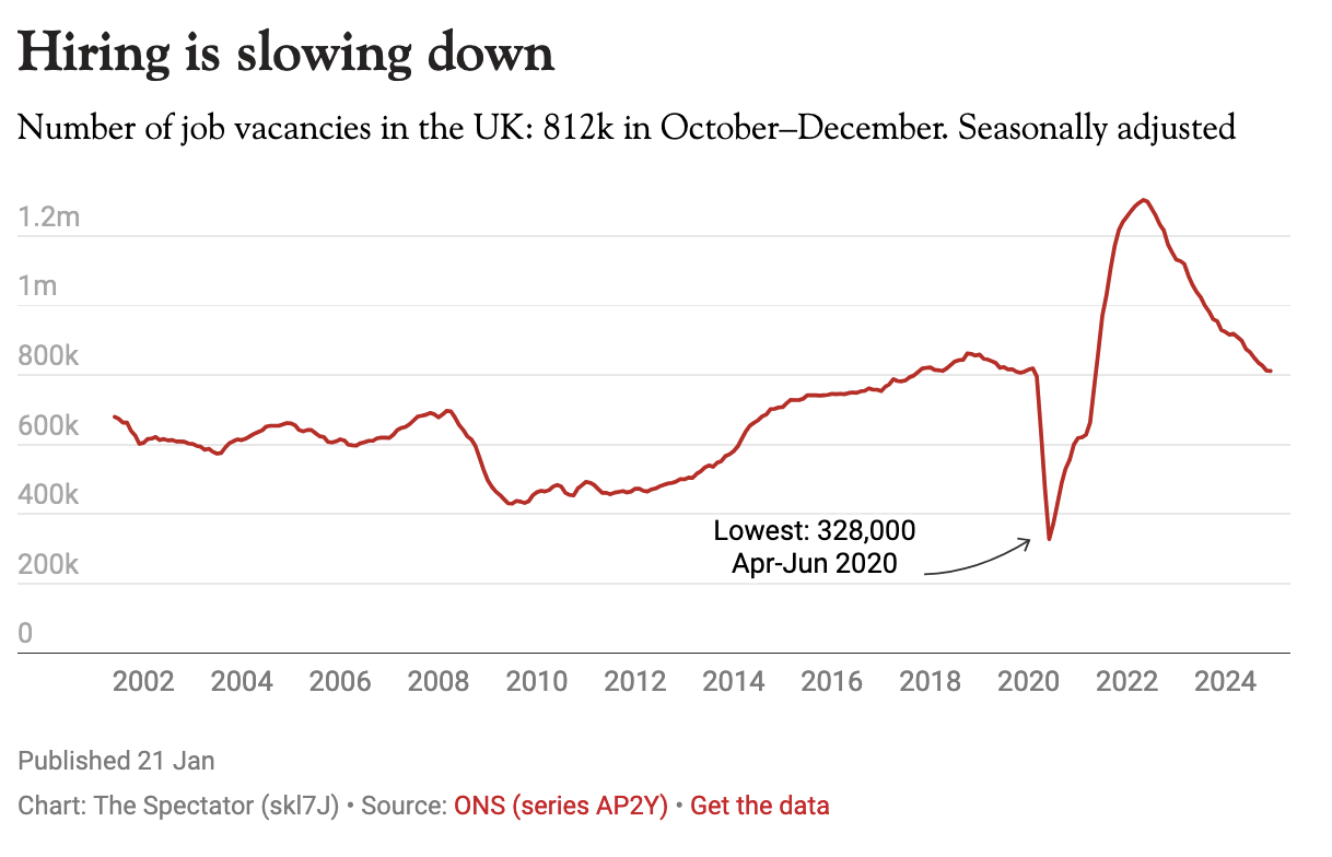 Rachel Reeve’s £25 billion National Insurance rise is beginning to bite. According to the latest data on our labour market, released this morning by the Office for National Statistics, payrolled employment fell by 47,000 last month — the sharpest fall since the pandemic. Meanwhile, the number of vacancies in the economy fell for the 30th consecutive period, unemployment rose to 4.4 per cent and there have been 21,000 more redundancies than in the same period a year ago.