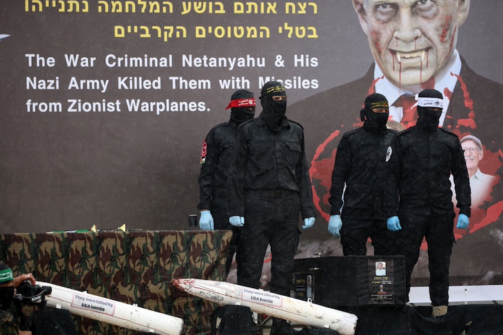 Will those leftists who say ‘Black Lives Matter’ now say ‘Jewish Lives Matter’? Will the people who think even scuffing a page of the Koran is an act of ‘Islamophobia’ call out the despicable race hatred of mocking the Jewish people next to the coffins of slain Jews? Will the activist class that sees ‘fascism’ everywhere – in every vote for Brexit, in every criticism of mass immigration – see the true fascism in Hamas’s garish demonisation of the Jews as it hands back four of the Jews it stole from their homes?