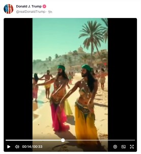 Finally, it should be pointed out that Trump did not make the AI video. There have been many AI videos of Trump and Elon, especially in the lead-up to the election. My personal favourite featured the pair dancing to a Bee Gees song.