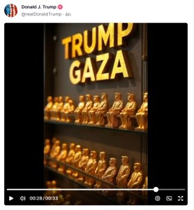 Trump Gaza video shared by President originated from pro-Israel accounts that have embraced AI, read today’s NBS News headline.