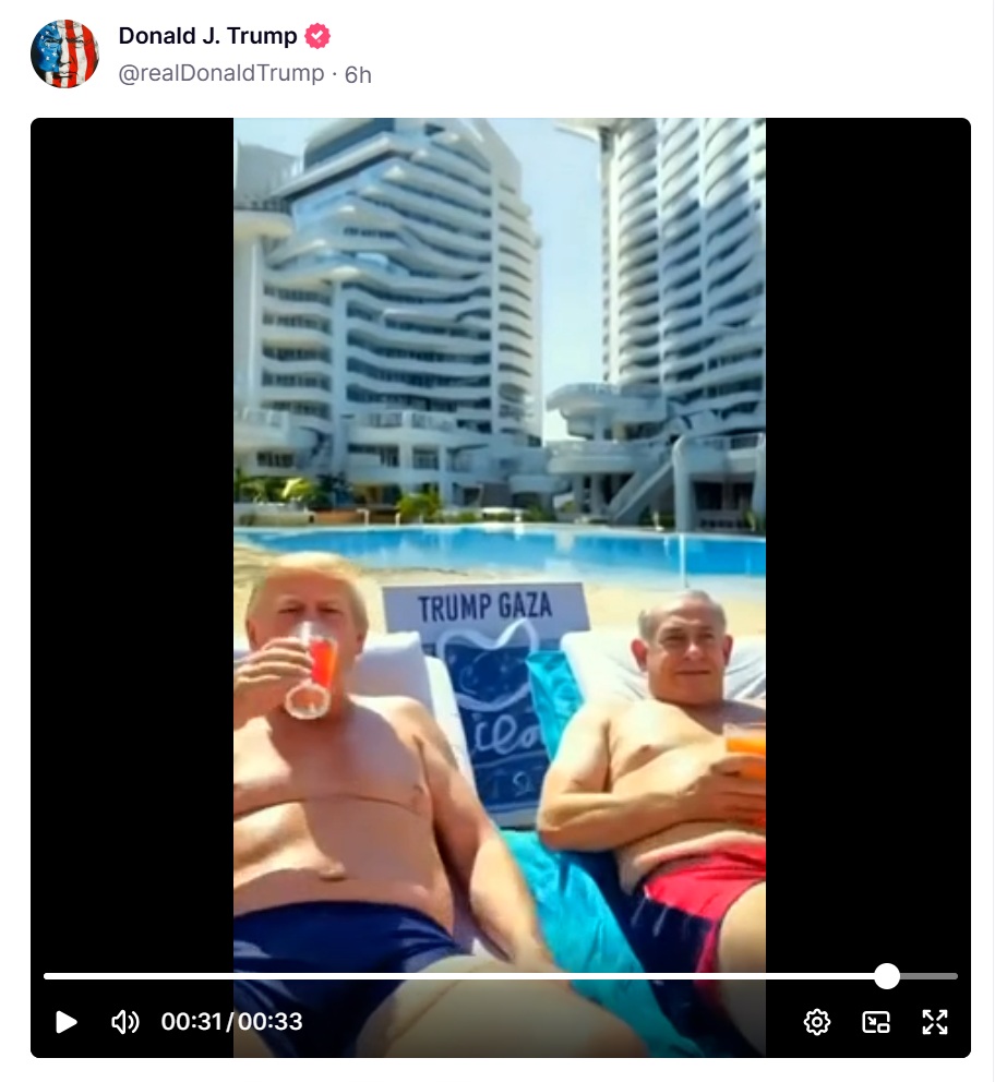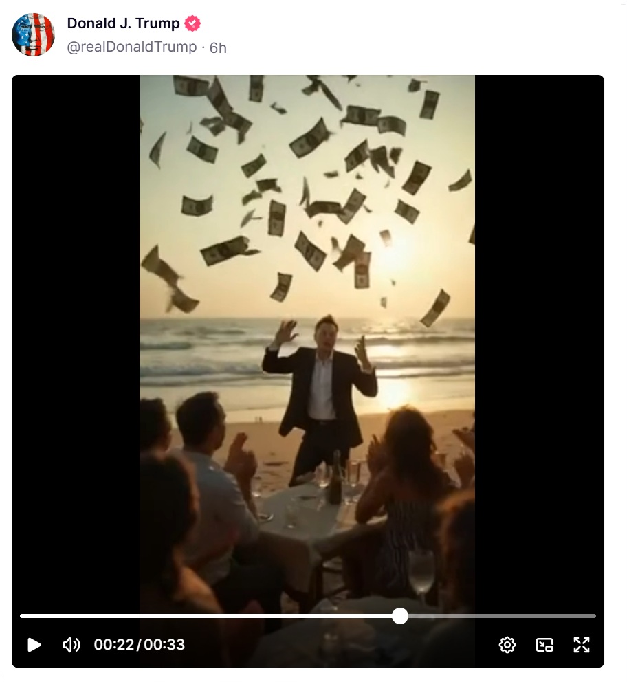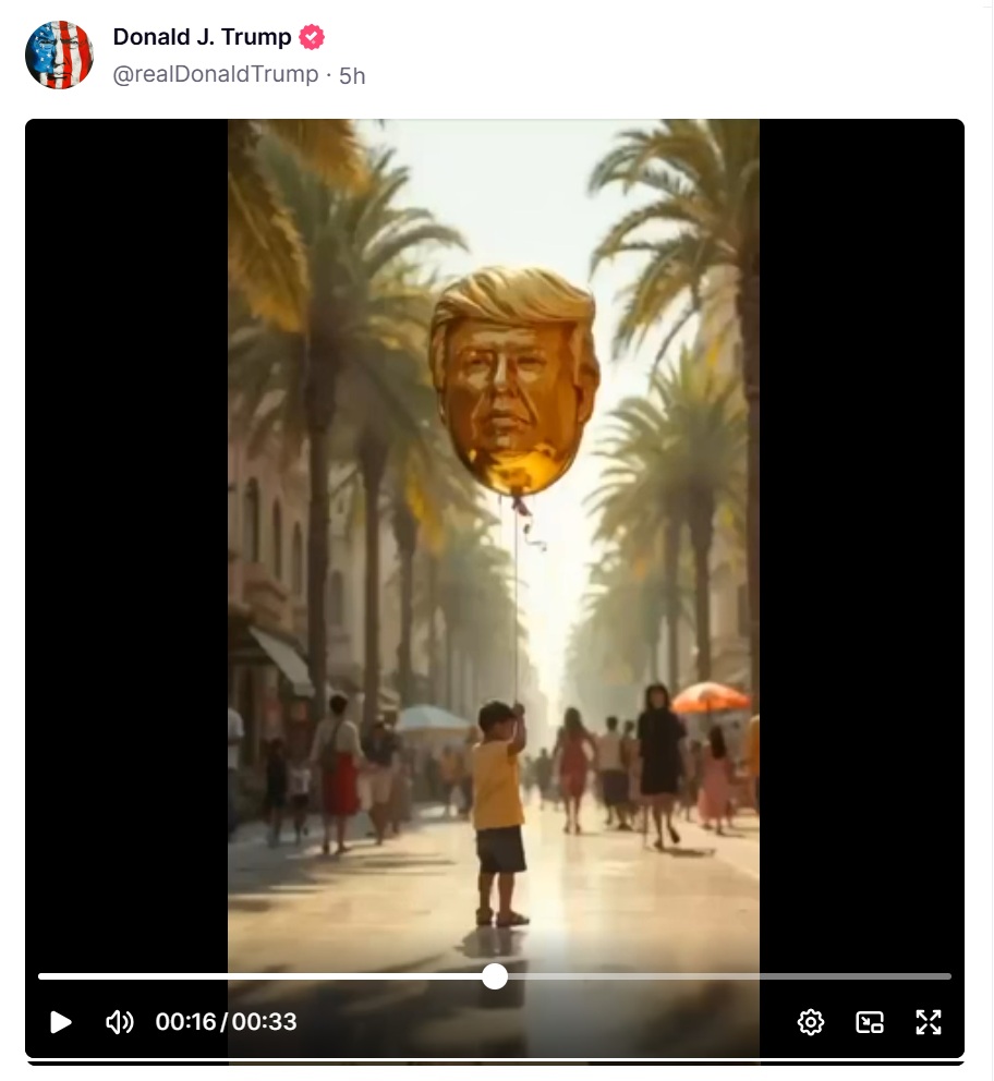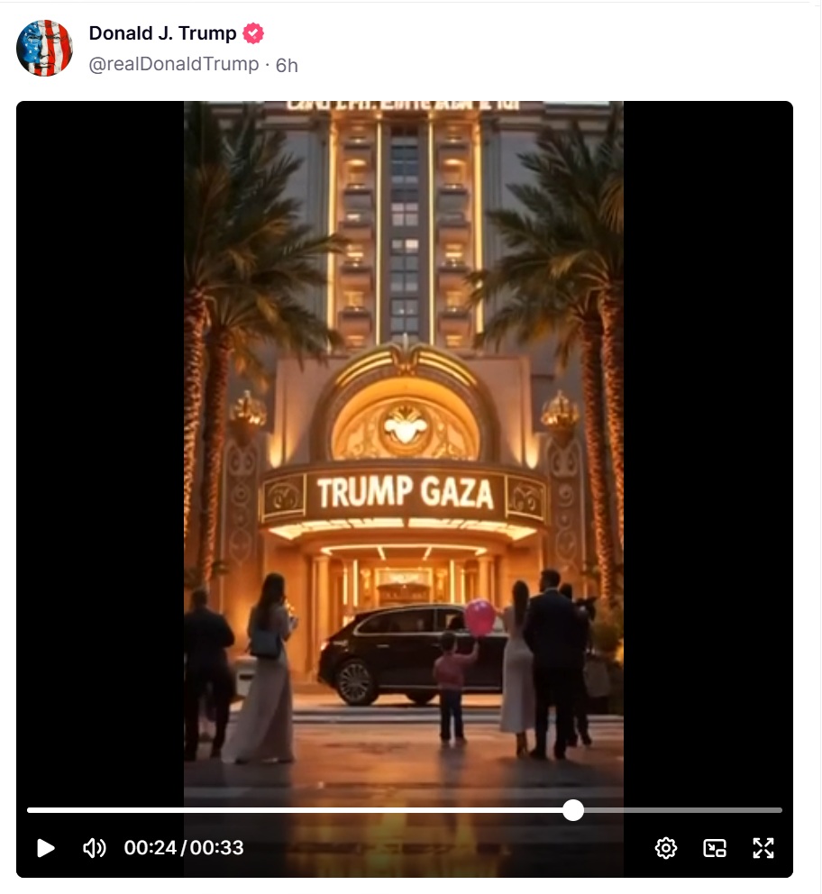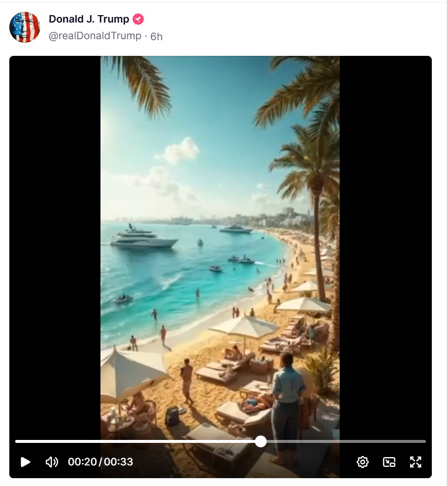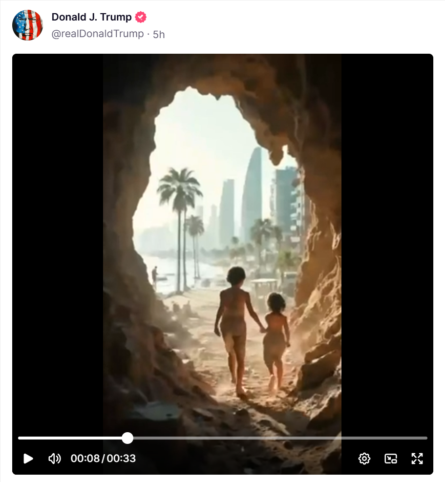 Trump Gaza video shared by President originated from pro-Israel accounts that have embraced AI, read today’s NBS News headline.