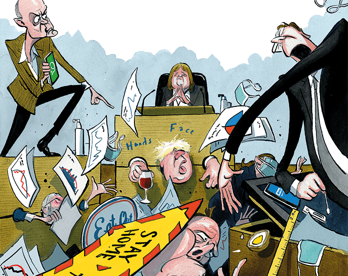 I thought I could count on the Tufton Street mafia to weigh in on my side – after all, aren’t they wedded to the principle that ‘government is best that governs least’? Surely, paying people not to work, forcing businesses to close and increasing public expenditure by £400 billion was anathema to them? But most of the right-wing policy wonks became enthusiastic supporters of the Covid restrictions, a group I dubbed ‘libertarians for lockdown’. Boris Johnson passed the initial test with flying colours, urging the public to ‘take it on the chin’, but soon fell into lockstep with the more cautious people surrounding him, including my political lodestars Michael Gove and Dominic Cummings. As someone who’d shared foxholes with them during the Brexit wars, that was heartbreaking.