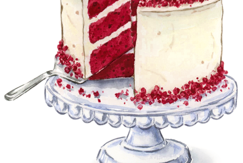 A red velvet cake is not just a red sponge cake: the ‘velvet’ refers to the fineness of the crumb and is a term that has been used for cakes, pancakes and scone-like shortcakes since the 1800s. The addition of cocoa to the mixture created a very smooth soft crumb, hence the name. The exact origins of the cake are unclear, although it is always listed as being a classic of the American South, and recipes for cakes combining buttermilk and cocoa date back to the 19th century. The ‘red’ was originally the effect produced by the reaction between buttermilk and vinegar on the one hand and the cocoa on the other – although it’s fair to say that the original colour would have been more burgundy than fire engine.