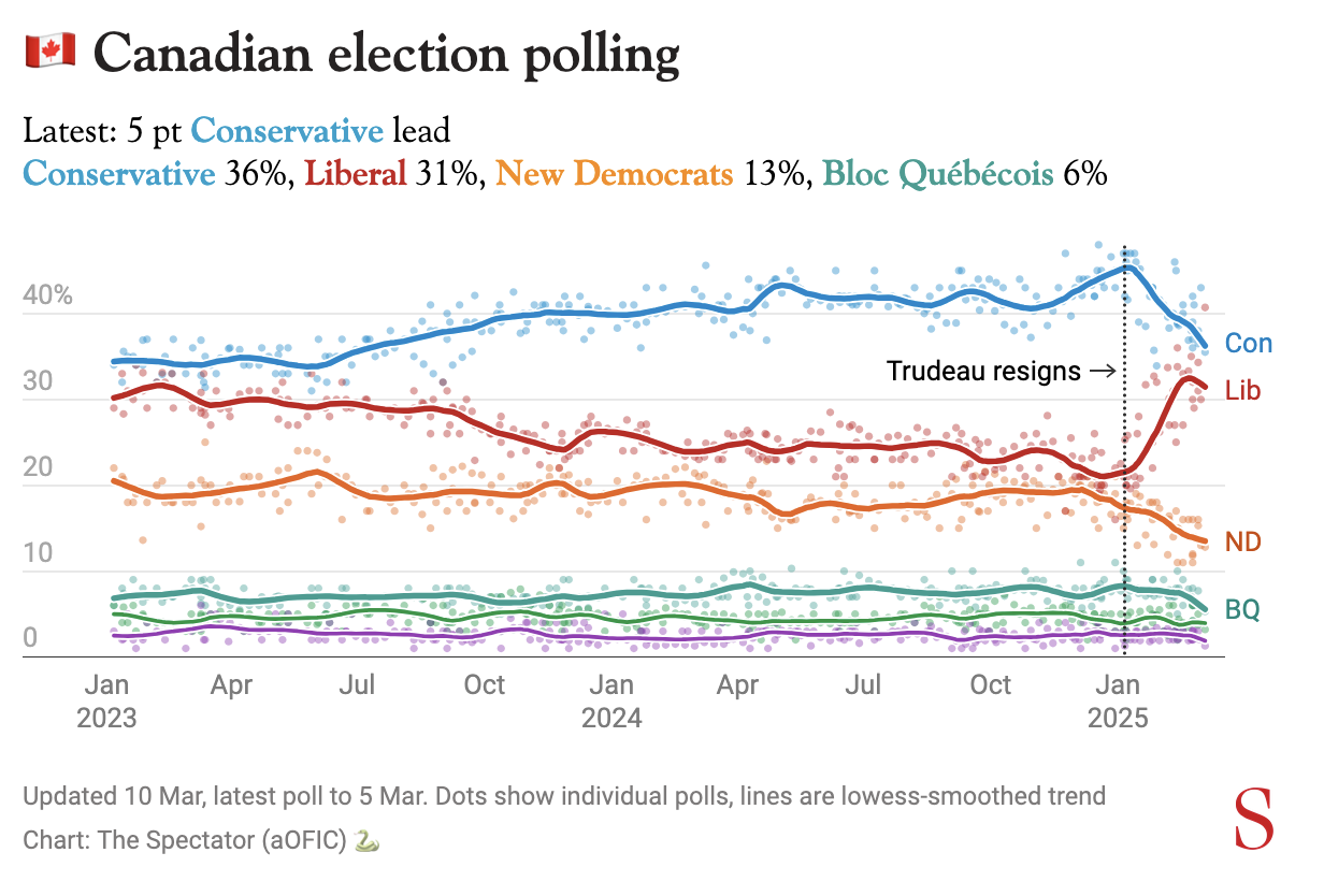 Hence Carney’s supporters believe he can take those skills and transfer them with ease. Some Canadians have bought into this theory, too. Recent polls highlight a tightening race between the Liberals and Conservatives for the first time since 2022. Most polls still show the Conservatives comfortably ahead, however.