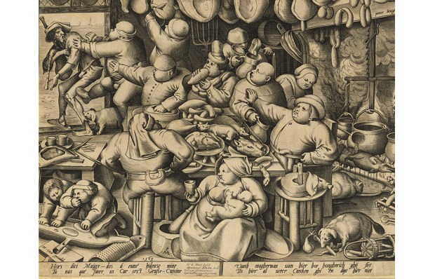 There is no requirement for a collector to accumulate thematically consistent paintings. Whim, availability, opportunism, taste, connoisseurship, pleasure, accident, catholicity all play their part. The Oskar Reinhart collection is gloriously heterogeneous, a series of bonnes bouches. What is it, if anything, that perhaps connects Goya’s ‘Still Life with Three Salmon Steaks’ (1808-12) and ‘The Adoration’? The Bruegel pushes the three kings into the margin. They are crowded out of the picture. Two of them are seen from behind, kneeling at the entrance to the stable at the extreme left of the picture. The black king, Balthazar, is at the head of a queue, waiting his turn, holding his gift. The baby Jesus has been cropped, the stable halved. The centre of attention is radically off-centre. The subject of the picture is rather teeming village life in late December. It is a great accumulation of incidentals. In the foreground, a woman climbs three brick steps from the frozen river, in her right hand a bucket which has just been filled from a hole in the ice. A child is playing on the ice in a little flat-bottomed boat, the tiny oars like drum sticks. It is cold. You can tell by the forward-lean, the effort, which Bruegel brings to the walking figures. Men are cutting firewood. And the snow is falling – in sizable gouts. I think of a Pasternak poem that describes a thaw like silver cufflinks. We live in weather, inescapable weather.