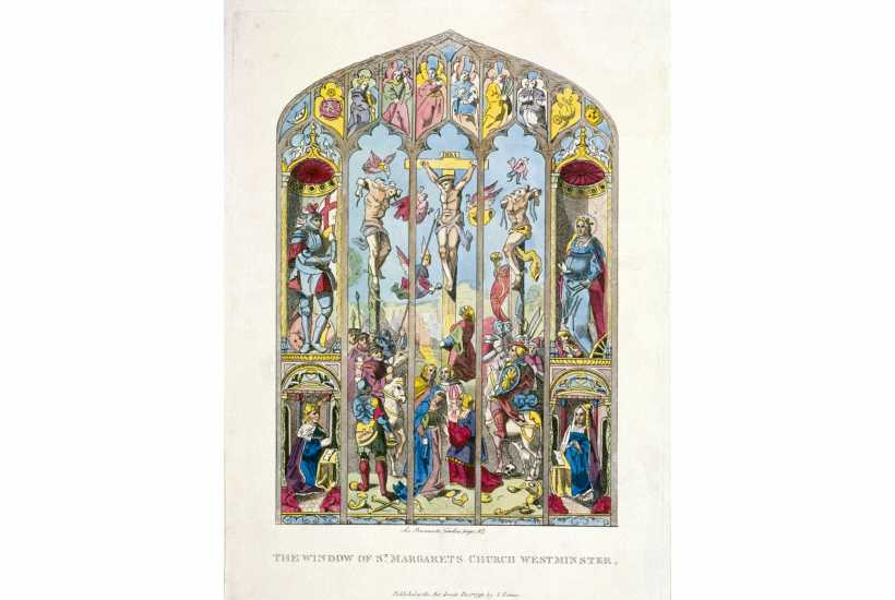 It is surprising that the iconoclasts missed these images in St Nonna’s. Even more surprising is the survival of an artwork which can be seen at the ground zero of the English Reformation at St Margaret’s, Westminster. The church’s great east window, illustrated at the top of this article, contains an unharmed and complete depictionof the Crucifixion in the most easily destroyed material, glass.