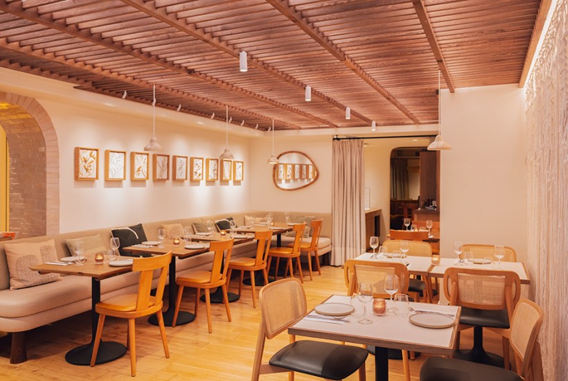 Delamina Townhouse is on Tavistock Street in Covent Garden. It is an Israeli restaurant, and a very fine and subtle one, though Israeli restaurants are rebranding as ‘eastern Mediterranean’ these days due to growing Jew hate on London’s streets, which fills me with rage. (I am not talking about criticism of Israel. I welcome all criticism. I am a critic. I am talking about demonisation, and the glib urge to annihilation. Plenty of restaurant critics have a line on the war. I have checked.) But not enough rage to stop eating.