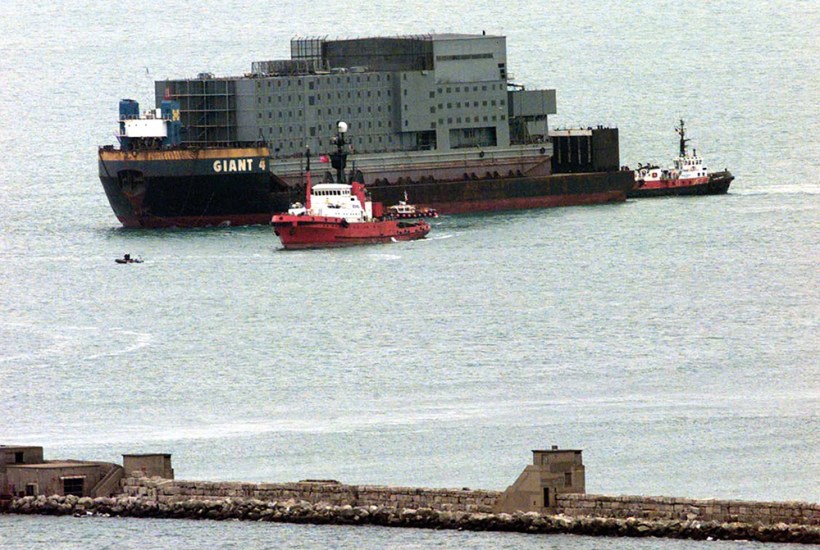 It is, in fact, a simple steel barge, originally little more than a hull, built on the outskirts of Stockholm in 1979 and sold to Norwegian owners. But it has moved extraordinary distances: first to Scapa Flow in Scotland, then to Gothenburg in Sweden, before being taken to the Falkland Islands, a Volkswagen factory on the German coast, Manhattan, Portland Bill in England and Onne in Nigeria, where it is now laid up, rusting away. Meanwhile its superstructure has provided accommodation for British troops, Gastarbeiter, American and British prisoners and oil workers in the Gulf of Guinea.