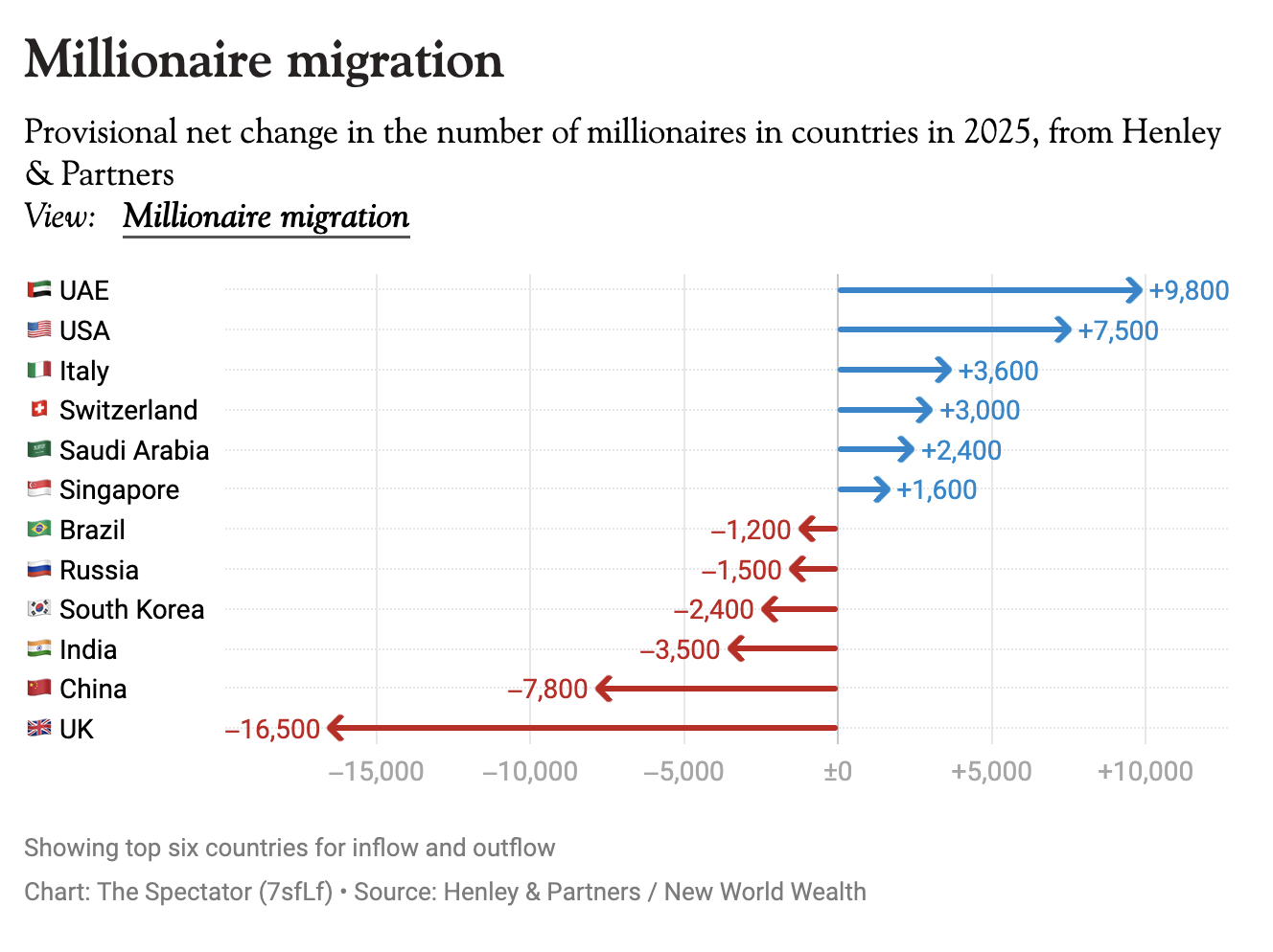 Britain will lose 16,500 millionaires this year, taking $90 billion of wealth with them. That’s according to a new report from Henley & Partners. If their projections are right, that’s more than double the number of dollar millionaires expected to leave China in 2025. As I wrote for the magazine last month, changes to the non-dom regime – first initiated in the dying months of the last government and worsened by the current Chancellor – have pushed many of the wealthiest over the edge.