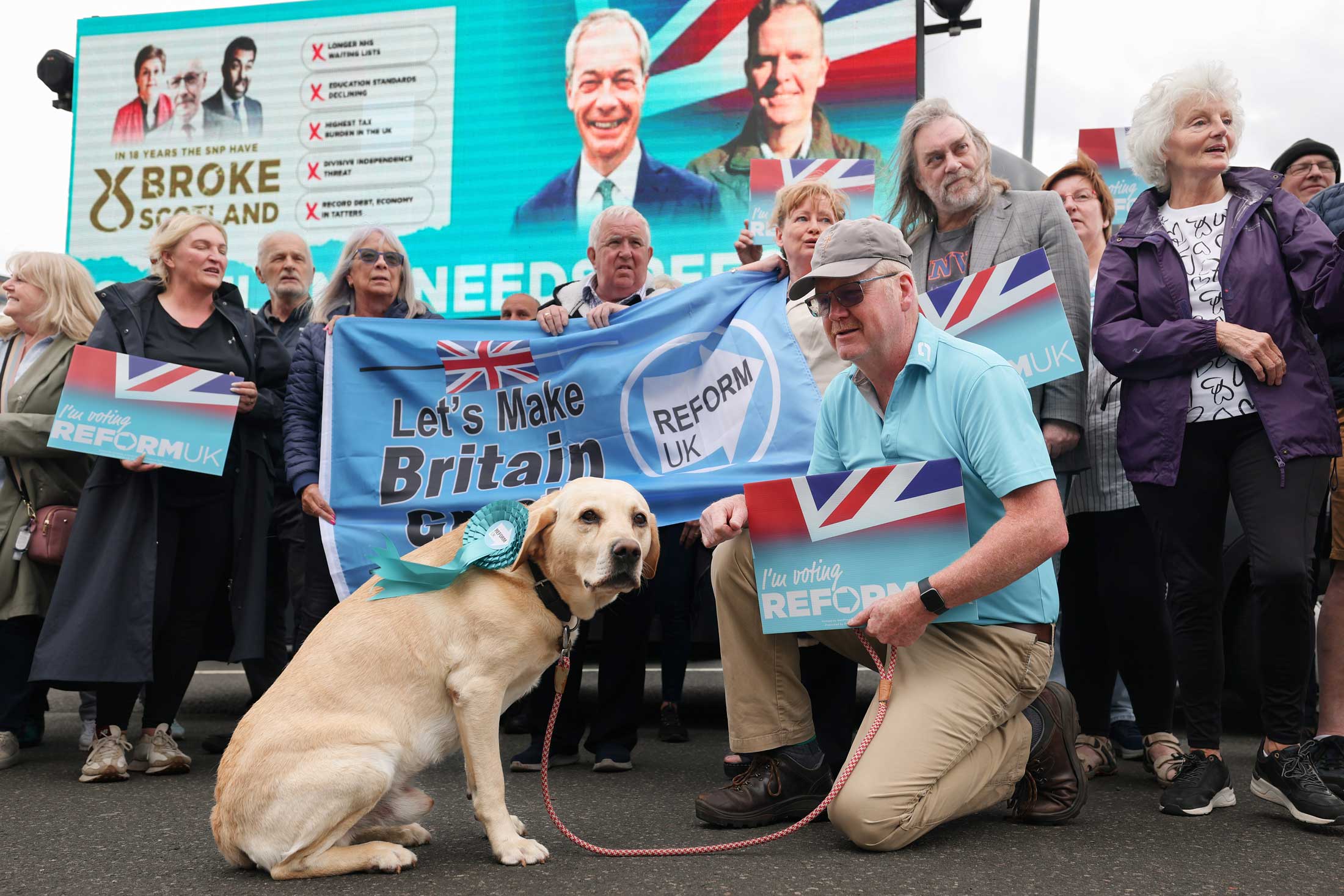 Reform supporters in Hamilton, Scotland, 31 May 2025 Jeff J Mitchell/Getty Images
