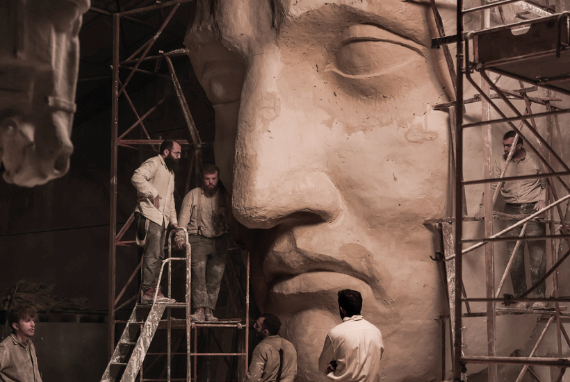 There is no sign of the impending threat of prosecution when I arrive at the atelier, a corrugated shed off the Parisian suburban line: a dozen workers in dungarees – a uniform they trace to the compagnons du devoir who built the French cathedrals – are methodically plastering a monumental classical face surrounded by scaffolding. Their troubles played out between the regional and national headlines, the atelier seldom gives interviews. For nearly three hours, we speak, stood between remnant prototypes and plaster models that are now the subject of public – and legal – controversy. ‘All sculptures are public memories that last, until we topple them, and by not making them we are losing our memories,’ Movahed tells me. ‘There are many who are artistically revolted by what we do as a momentary reaction to contemporary art. But there is a morbidity to civic “fine art” today because of the way it depresses those who have funded it – us, the people.’