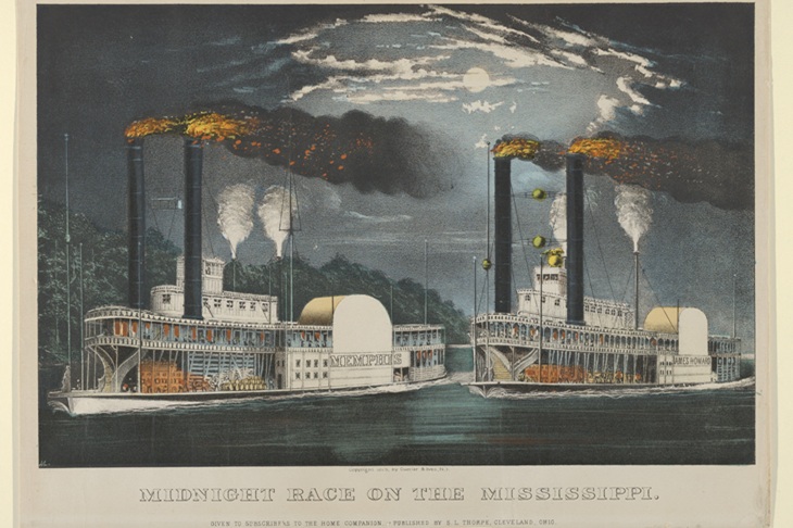 Steamboats would often race each other neck and neck, a recklessly dangerous escapade which was largely responsible for the drowning of some 40,000 passengers in the course of 30 years, not to mention countless burst boilers. But every time one ship blew up, another was built. One exploded a short way out of Memphis, killing 1,550 of the 2,134 soldiers on board, who were returning from the Civil War. The toll was 37 higher than the Titanic’s. Many of the sunken ships now lie under farmlands, as the river has kept changing course.