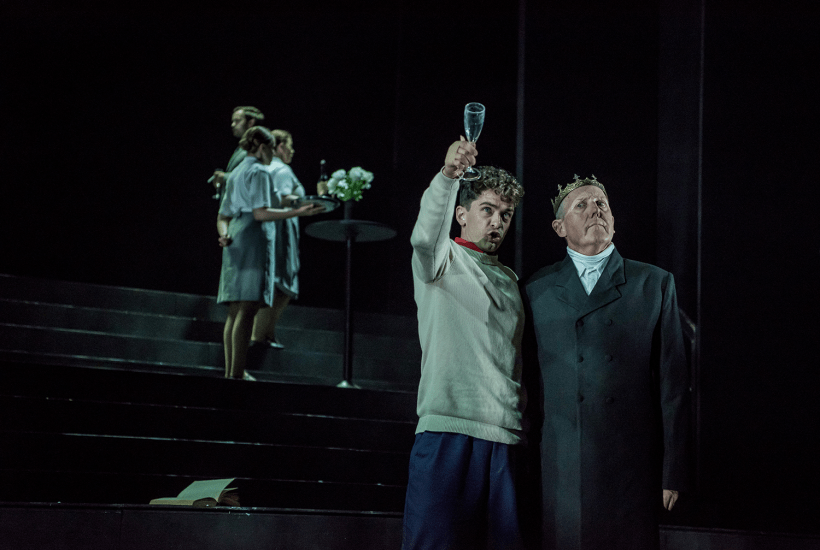 So it’s updated – suits and evening wear – but you barely notice, with the chorus gliding around like predatory caterers. Sami Fendall’s set designs are minimalist (not much more than a flight of steps) but they’re so skilfully lit (by Jake Wiltshire) that they evoke the whole noir-ish, shifting world of Elsinore: shadows, corridors and blasted wastes. The appearance of the Ghost (Per Bach Nissen), meanwhile, is a real coup de théâtre. The atmosphere is as compelling as it is oppressive, and with Hamlet as a sort of tormented hipster amid the upscale couture of the court, Furness lands hit after palpable dramatic hit.