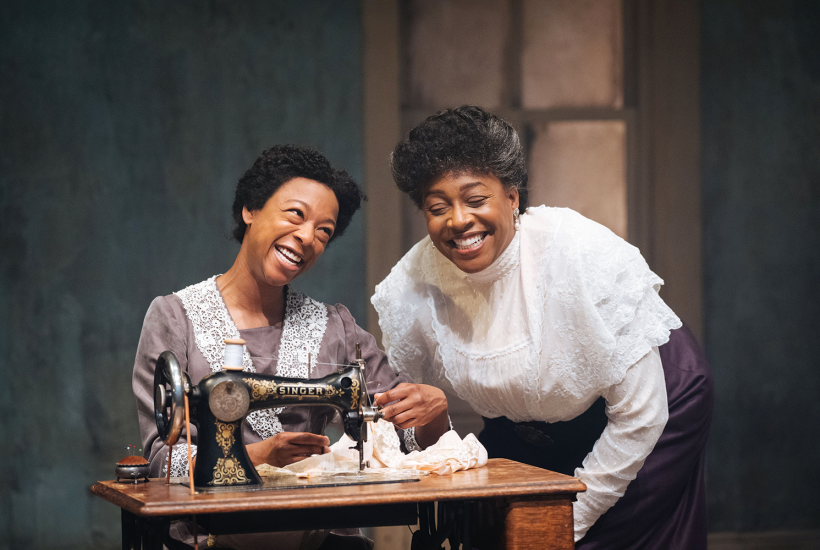 After a long day of gossip, Esther visits Mayme, a sexy nightclub pianist, who drinks gin and makes cryptic remarks about her profession. ‘A gentle touch is gold in any country,’ she says. At night Esther returns home and enjoys the affectionate teasing of her wise, twinkly landlady who asks if she has a suitor. Sure enough, Esther is being courted by George Armstrong, an educated bachelor with a steady job in Central America. He’s digging the Panama canal. It’s unclear how he and Esther met but he writes her long, erudite letters full of amorous implications. George is perhaps the most high-minded navvy ever to pick up a shovel. ‘I stood thigh-deep in crimson petals,’ he writes, after felling an exotic tree. Esther sends him envelopes containing bits of silk and cotton which strike George as rather puzzling. They’re bound to puzzle the audience too. The explanation is that the author, Lynn Nottage, links all her characters by means of fabrics and garments. Hence the show’s title.