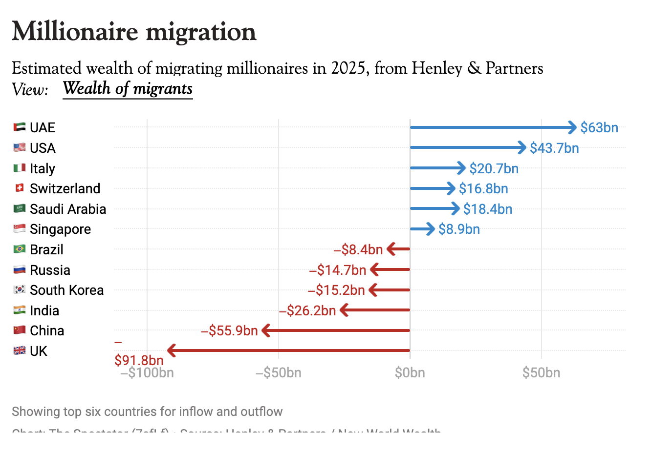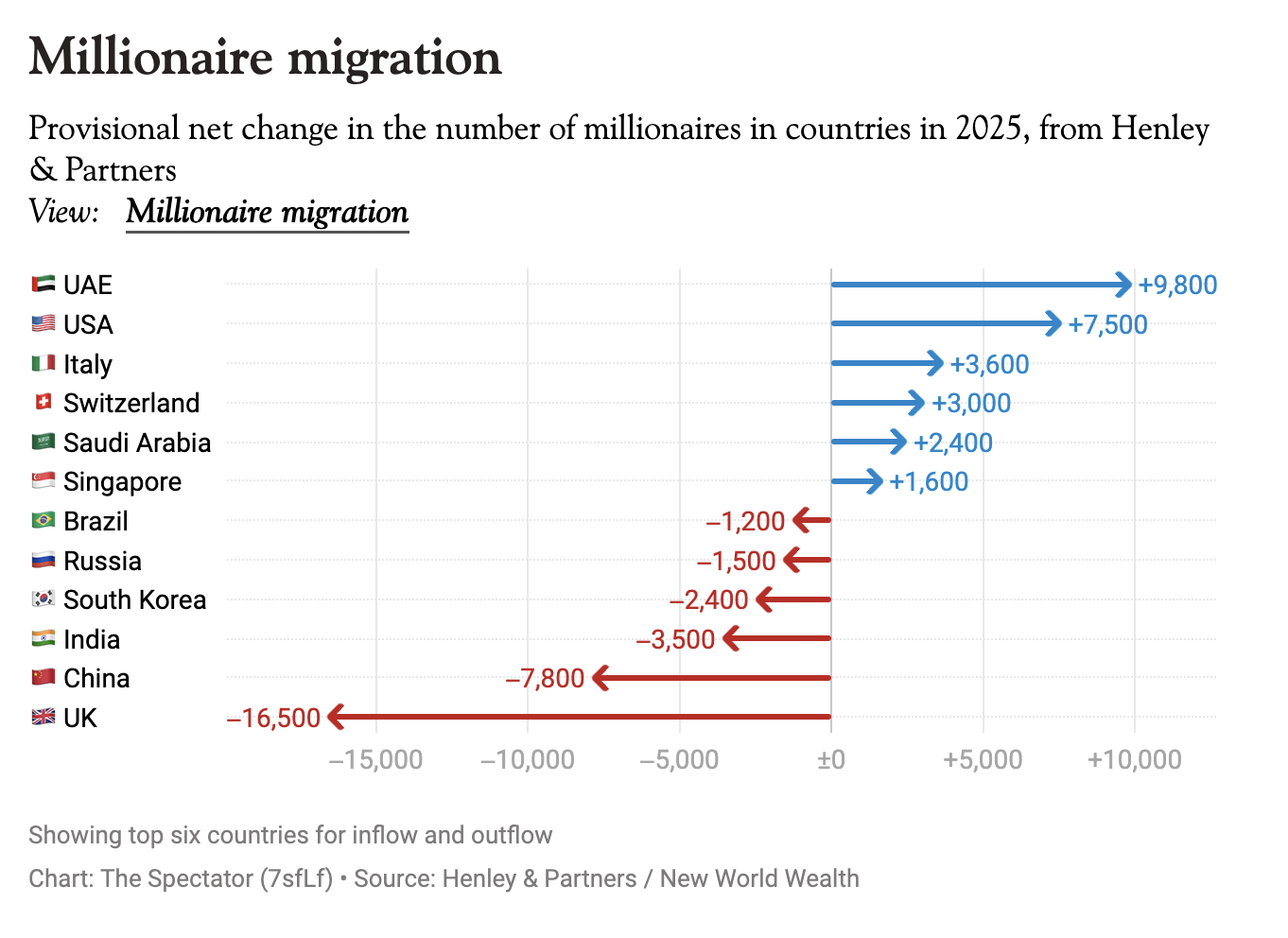 What’s more, her reforms to the non-dom regime and the wealth taxes currently being floated have led to forecasts of some 16,500 millionaires fleeing the country this year: worse than anywhere else in the world.