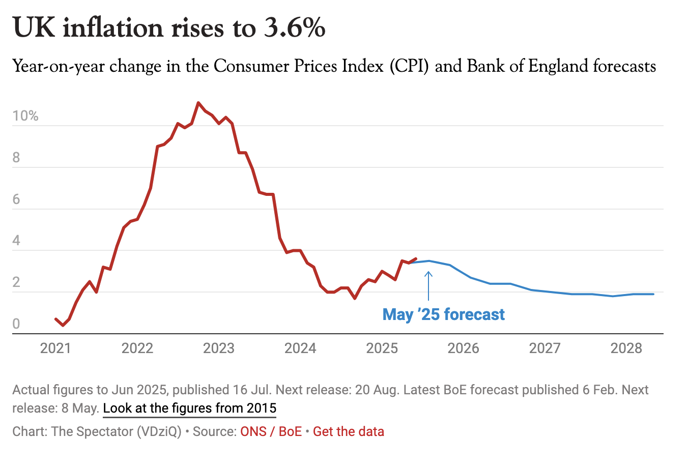 Fears about the cooling labour market and job losses, caused in part by the Chancellor’s £25 billion raid on national insurance taxes, have led the Bank’s governor and MPC to suggest more rate cuts are needed soon. Markets have heard that message and are expecting rates to come down to 4 per cent when the rate-setting committee next meets in August. Today’s higher than expected figure may change that.