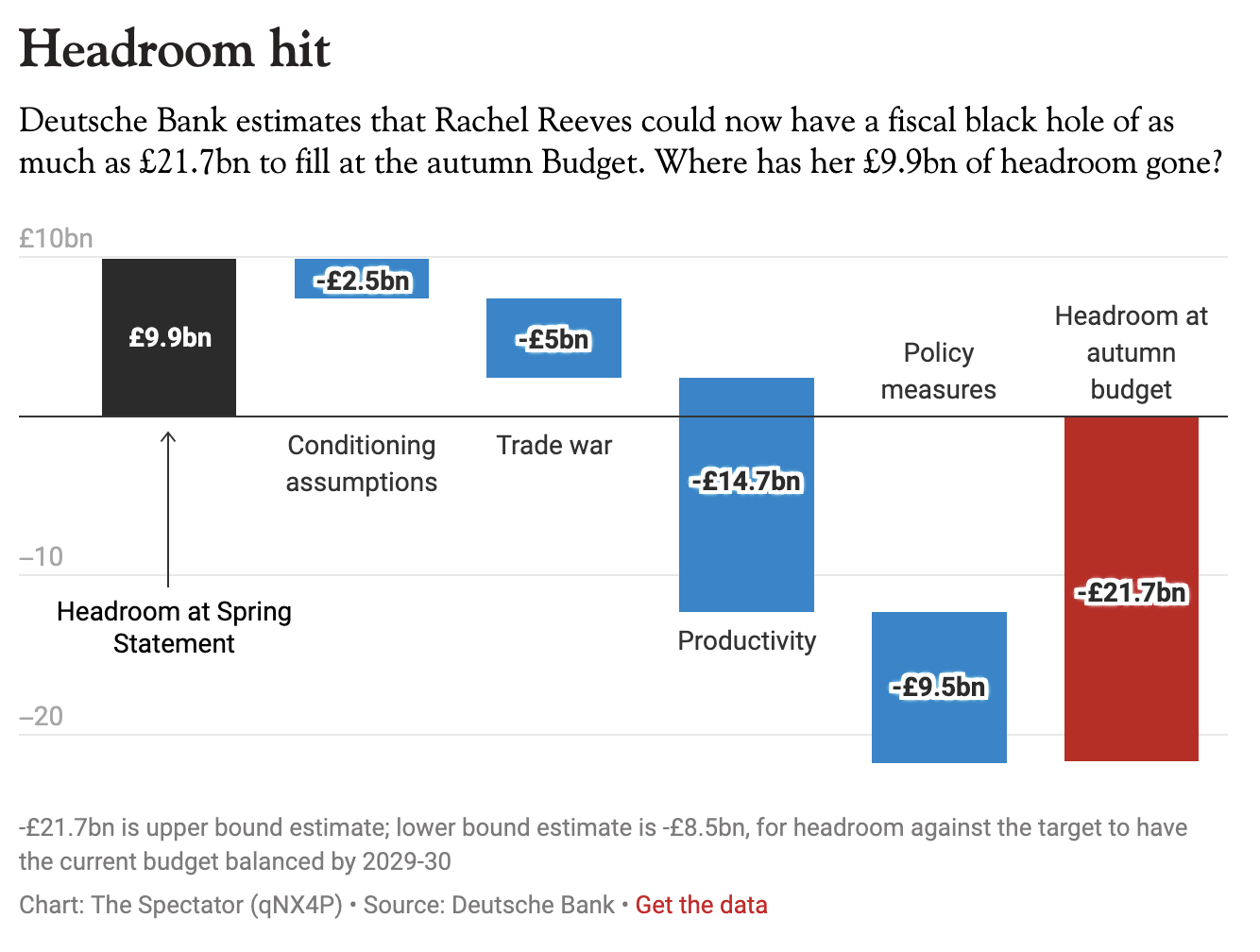 As Rachel Reeves starts sketching out her autumn Budget, most of the focus has been on the tax hikes she’ll need if she’s serious about sticking to the ‘ironclad’ fiscal rules she recommitted to just last week. Economists reckon the wafer-thin £9.9 billion margin she left herself at the Spring Statement has already been wiped out and that she’s now staring down a black hole of over £20 billion.
