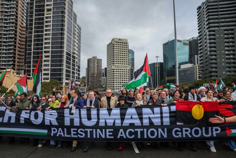 Posters of watermelons were everywhere, a symbol the PLO adopted when it was banned for terrorism. It was confusing for those used to thinking of the Greens as watermelons, as Greens banners were everywhere too, although it hardly mattered as on this issue the groups were interchangeable. The Teachers Federation and the National Tertiary Education Union were out in force, which probably ‘explains at least in part, the support for Palestine amongst the TikTok generation, and in a triumph of intersectionality, one placard said Anglo Bourgeois for Palestine. There were no mainstream Australians.