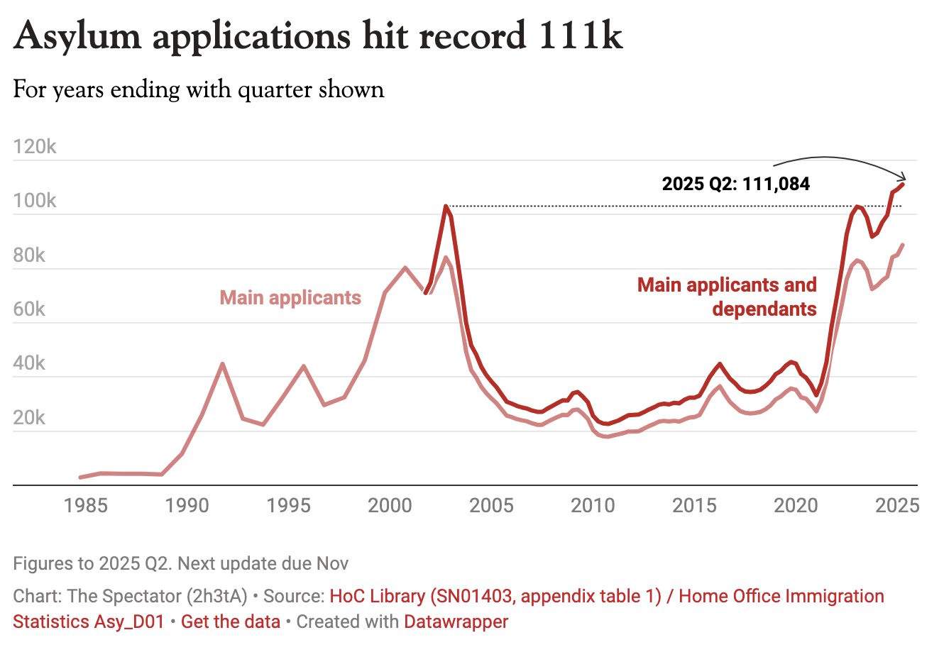 When it rains for Sir Keir Starmer, it pours. Now it has emerged that during the Labour lot’s first year in office to June 2025, a whopping 111,000 people claimed asylum in the UK amid a surge in small boat crossings – up by a staggering 14 per cent on the previous 12 months. So much for smashing the gangs, eh?