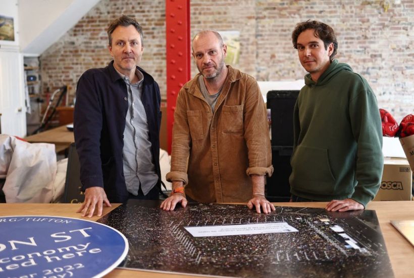 ‘Sorry. That’s my job,’ said Williams, rebuking herself for some reason. She asked about their humiliation of Liz Truss last year at a public meeting in Beccles, Norfolk. Truss’s speech was interrupted by the unveiling of a banner showing a lettuce above the caption, ‘I crashed the economy.’ To arrange the prank, they hired the meeting hall in advance and recorded a fake music video while their ‘action co-ordinators’ secretly installed the banner. An expensive operation. They travelled to Norfolk with musicians, costumes, lights, cameras, microphones and other props. James Sadri admitted that their resources are extensive. ‘People ask, how do you pull this off, part-time, four of you? We don’t. We have this incredible crew of amazing people who make all of this stuff happen. They like to live in the shadows. You might be sitting next to one of them right now.’